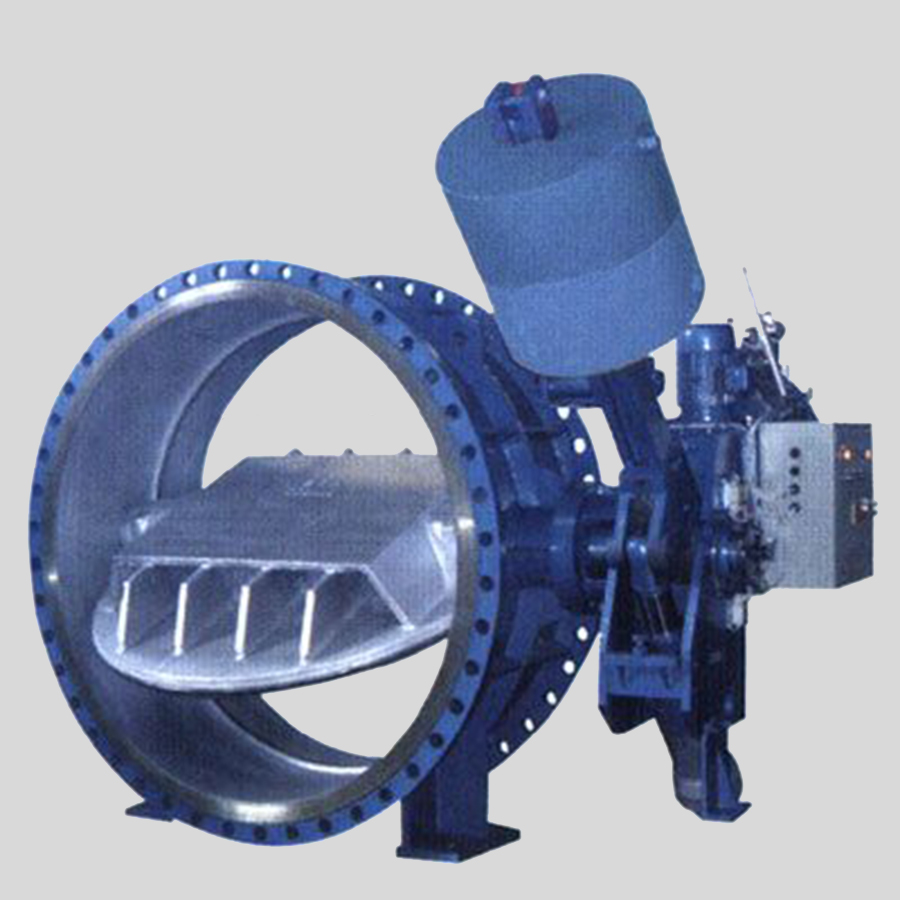 Butterfly valve are equiped on the hydro turbine inlet pipe, be used for through or cut off flow quickly. Counterweight butterfly valve is one type of butterfly valve which drived by hydraulic counterweight, it can be closed without electricity, effectively dispel the destructive water hammer, prevent water pump and hydraulic turbine from over speed, reduce the pressure fluctuation of the pipe network system, guarantee equipment’s safe and reliable operation.