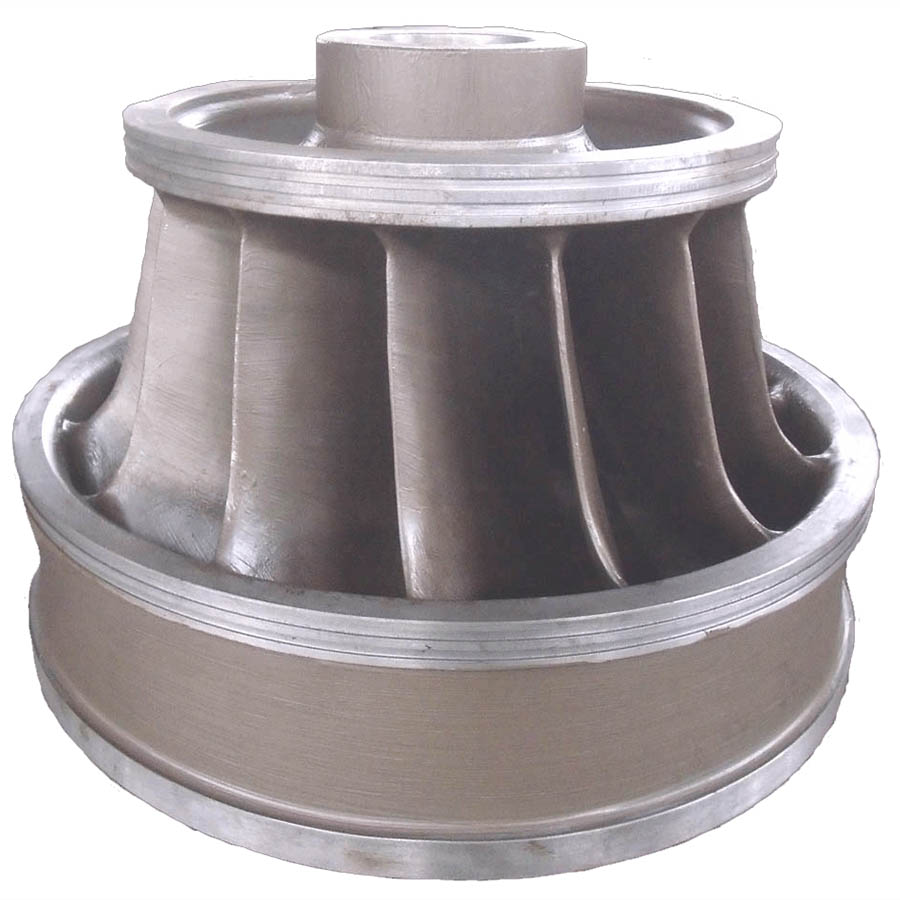 Francis Turbine runner compose of the blade, upper crown, bend and cone.The whole rotating part is mainly composed of the runner, main shaft, flywheel and main sealing assembly etc. The main shaft is laid in horizontal. The runner cone is keyed on the end of the main shaft, and locked with bolt. The runner is the principal component of the turbine convert hydraulic energy into mechanical energy.